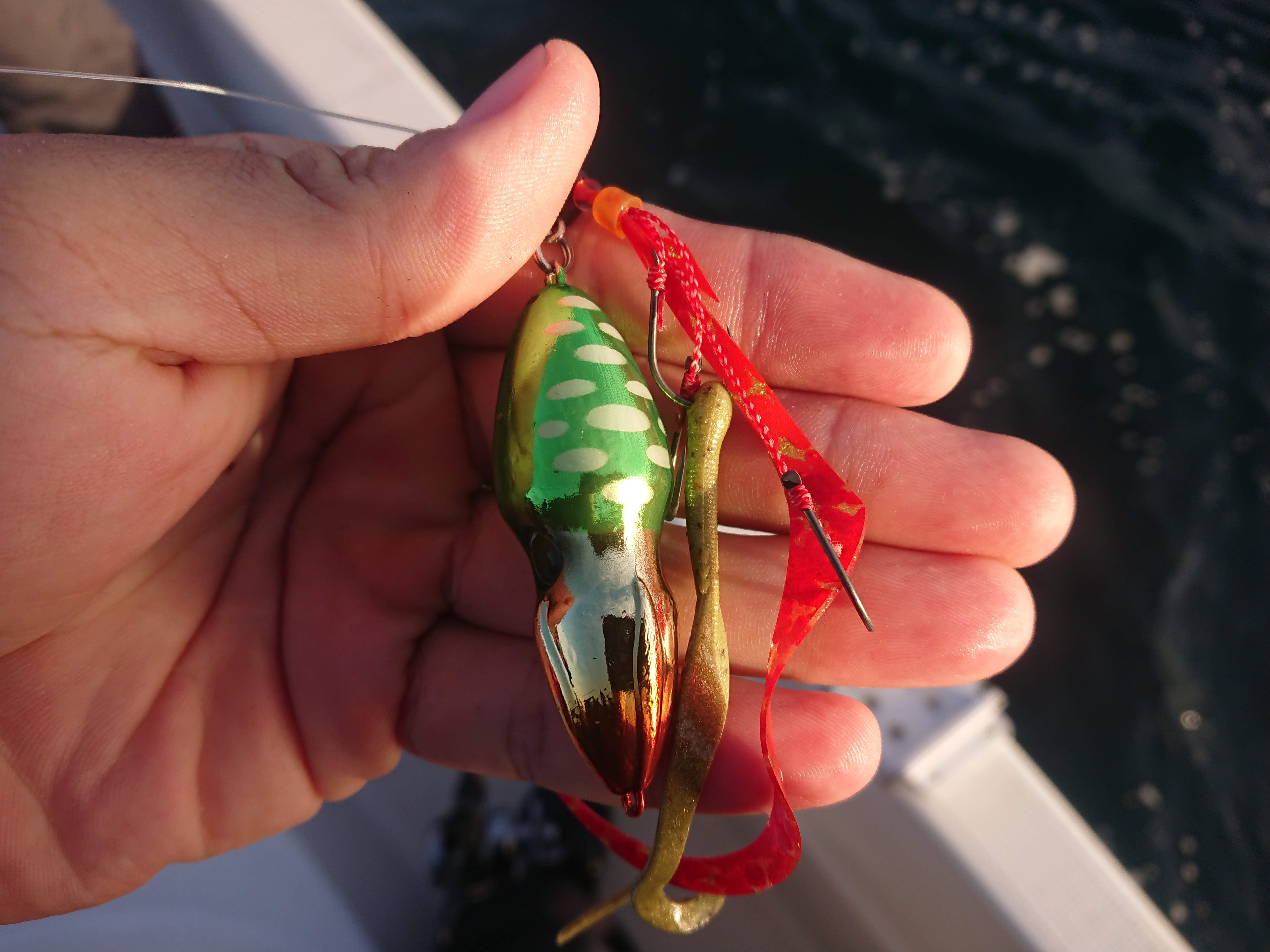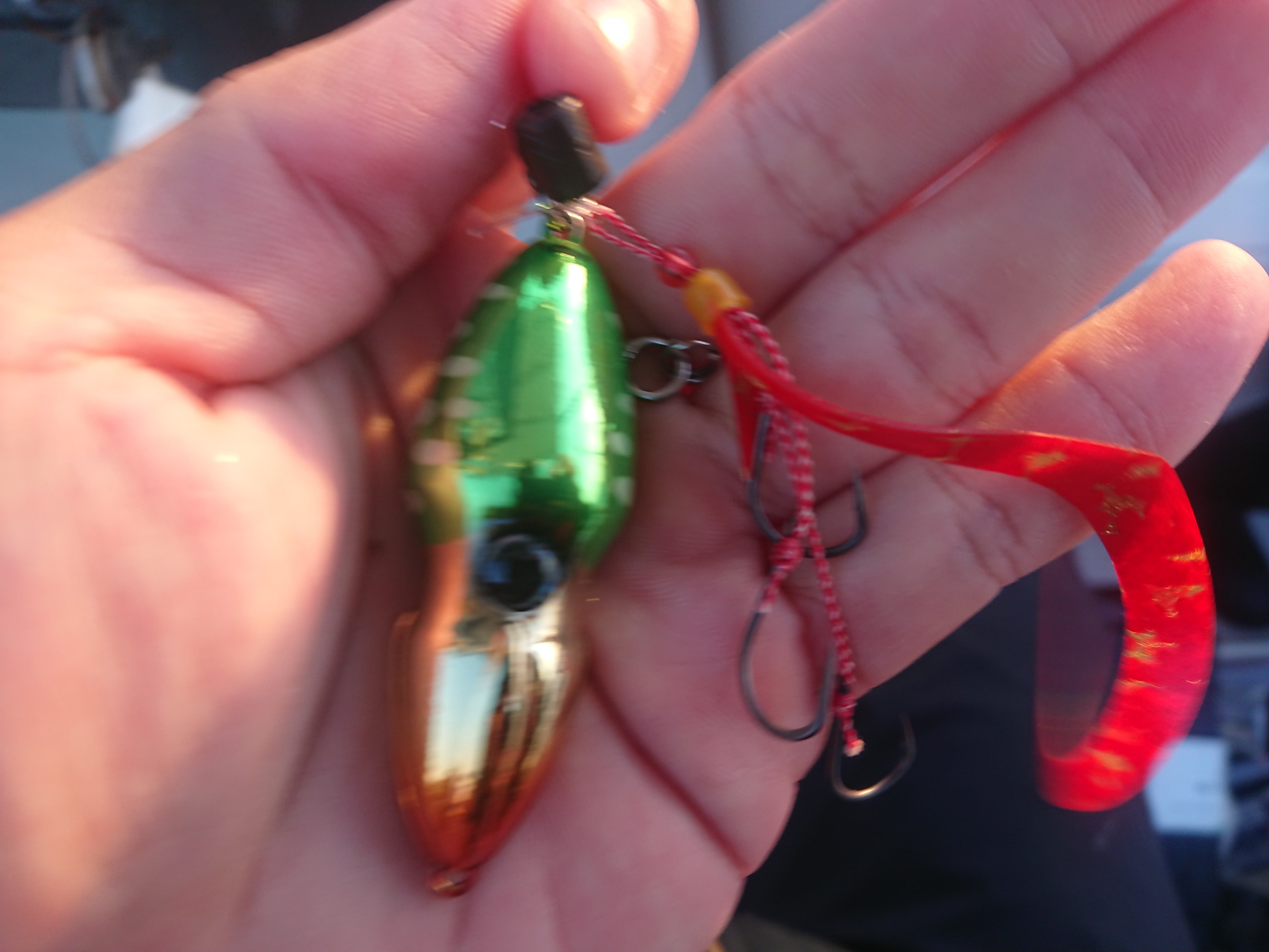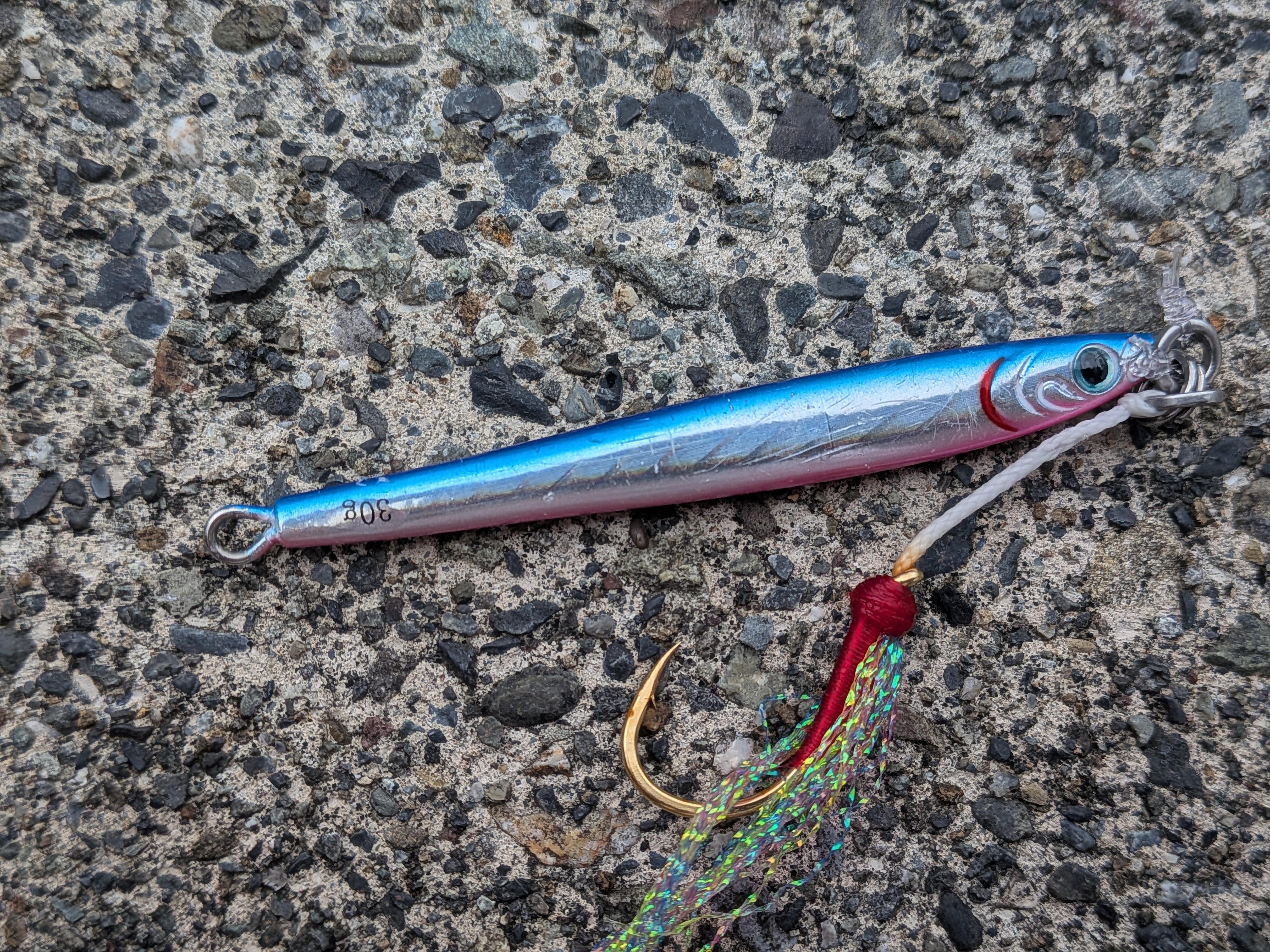 群れの動きとジグの位置が合えば見事にヒット。ギュンギュン引くのがたまらなく楽しい。写真撮る暇も無かったけど無事1匹ゲットした。