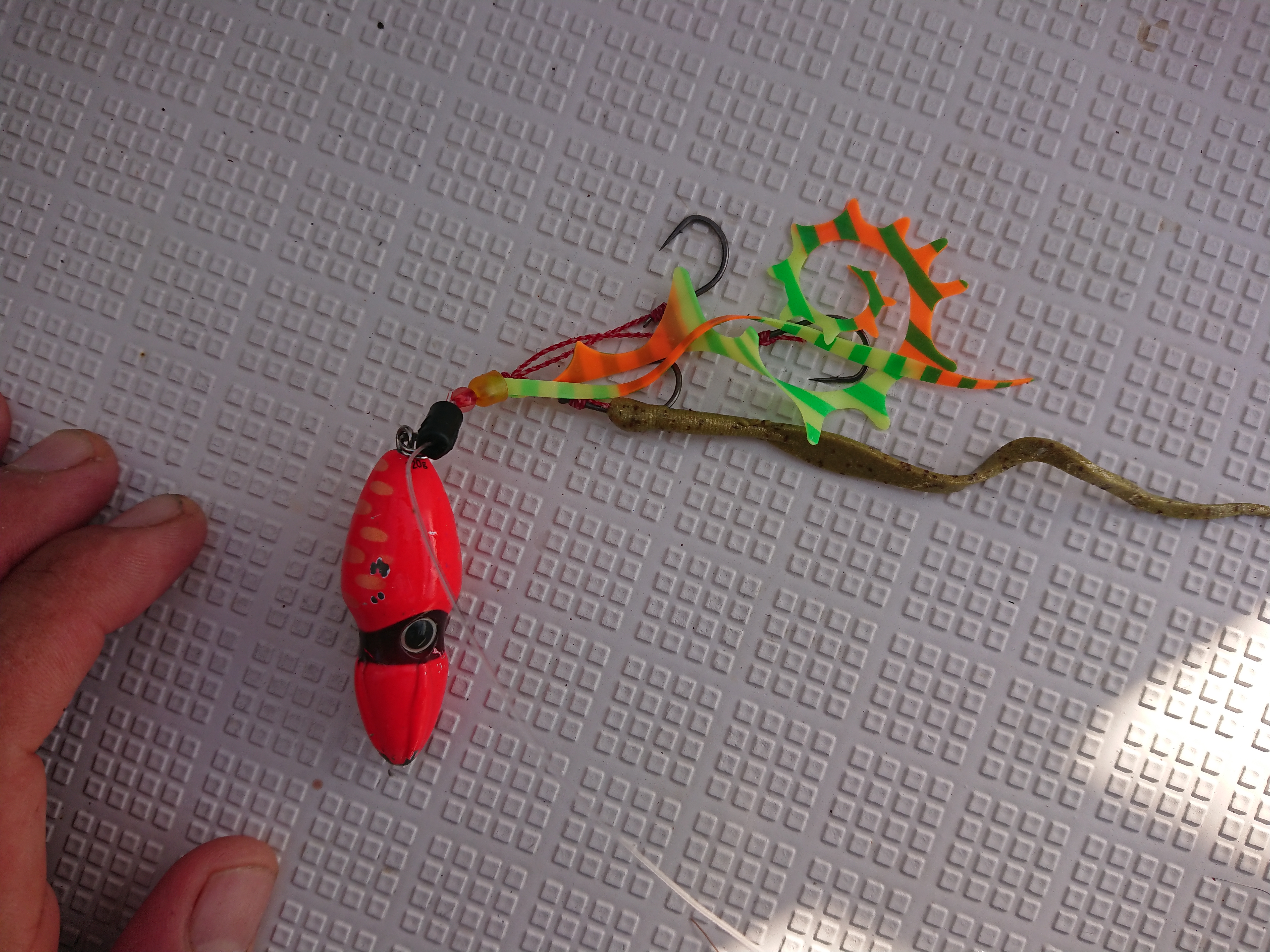 同行者は皆さんが面倒見てくださっていて何とか釣りをしていた。何ならネクタイとかワームとかもセッティングしてくれていた。
