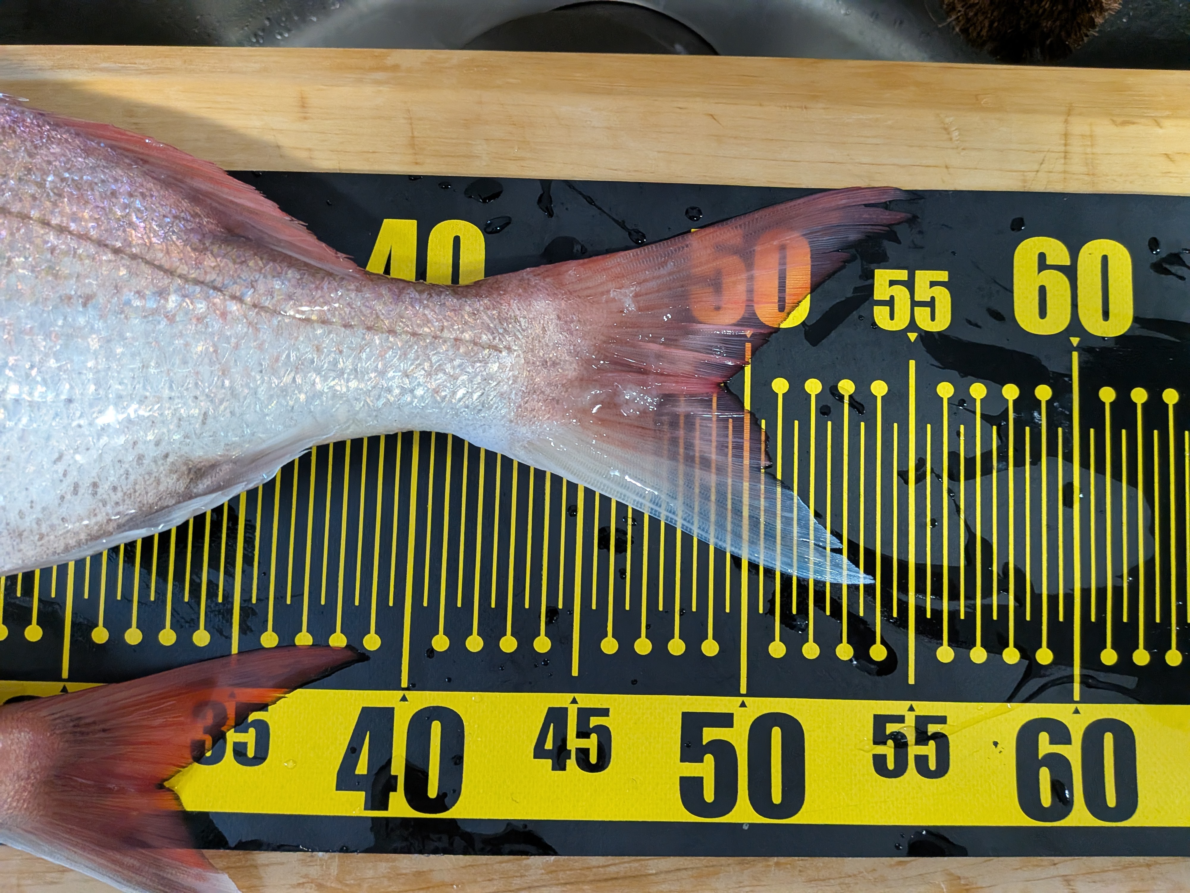 すぐにシロアマダイが掛かる⇒水面ポロリのコンボを決めるものの、その後更に1匹追加。