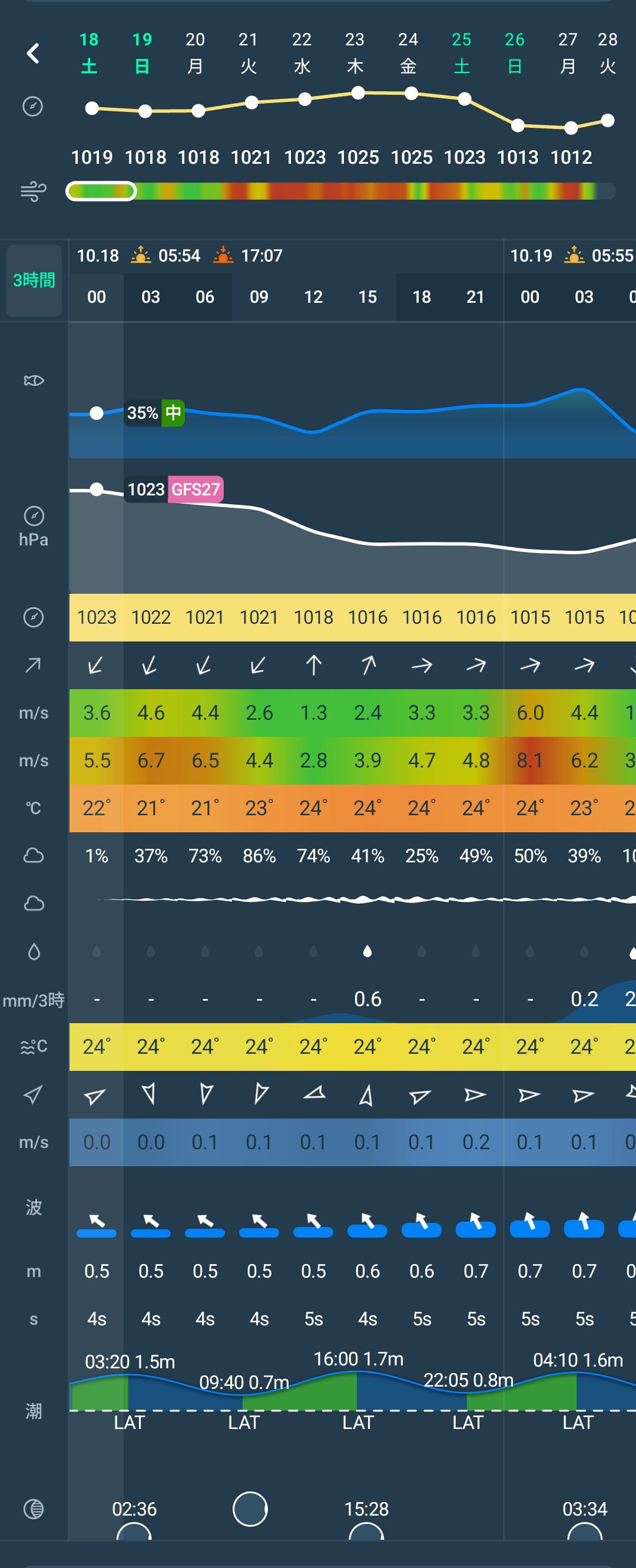 早い時間はオレンジで、時間が経つにつれチャート(黄緑)が良かった。僕だけでなく船全体がそんな雰囲気。