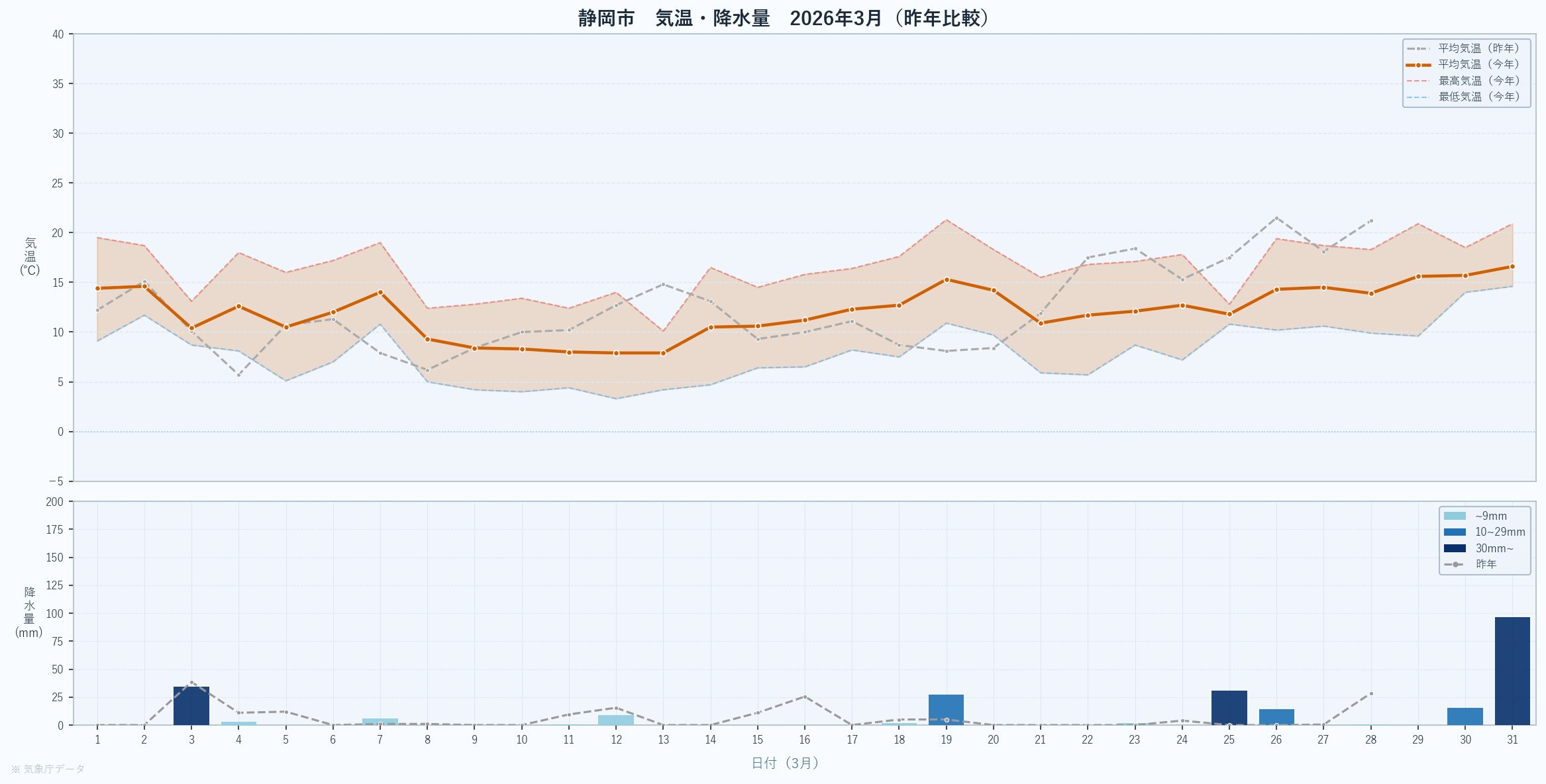 | 月間平均 | 14.6 | 18.0 | +0.6 | -3.4 | – |